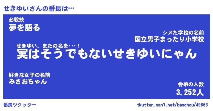 | ヒーロー風カッコイイあだ名 | 『スーパーセキユイ』『幻影騎士セキ』 |