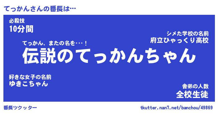 | ヒーロー風カッコイイあだ名 | 『スーパーテッカン』『暗黒騎士テッ』 |