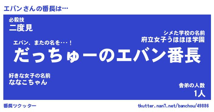 | 意味不明あだ名 | 『ペロリンエバン』『エバンフォーエバー』 |