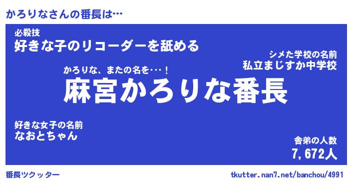 | 意味不明あだ名 | 『ペロリンかろりな』『永久保存かろりな』 |