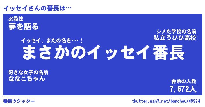 | 肩書あだ名 | 『イッセイCEO』『イッセイ大統領』 |