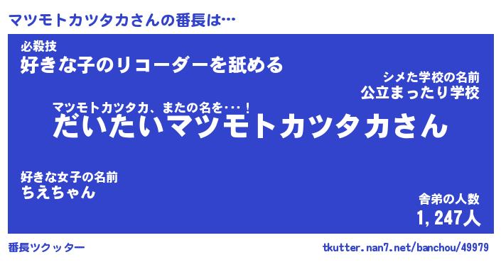 | 肩書あだ名 | 『マツモトカツタカ店長』 |