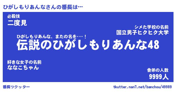 | 胡散臭い通販商品みたいなあだ名 | 『必ず成功する霊験あらたかなお札…その名も「ひがしもりあんな」』 |