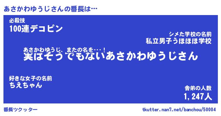 | 肩書あだ名 | 『あさかわゆうじ御曹司』 |
