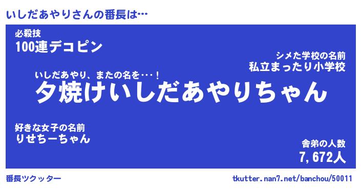 | ピコ太郎風あだ名 | 『イコ一郎』『ピイ十郎』『イシ史郎』 |