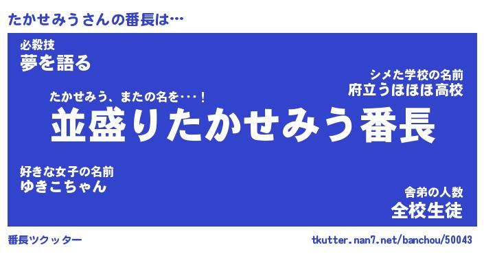 | ヒーロー風カッコイイあだ名 | 『スーパータカセミウ』『魔戒騎士タカ』 |