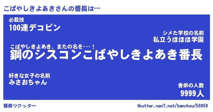 | 伝説のあだ名 | 『封印されしスナイパーこばやしきよあき』 |