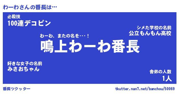 | ヒーロー風カッコイイあだ名 | 『スーパーワーワ』『ウルトラわーわマン』 |