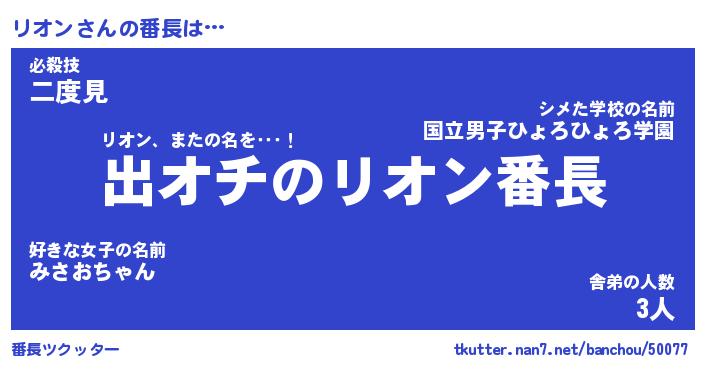 | ヒーロー風カッコイイあだ名 | 『スーパーリオン』『ウルトラリオンマン』 |
