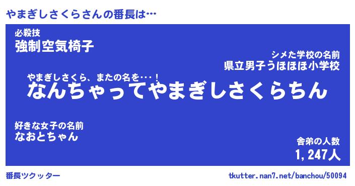 | ヒーロー風カッコイイあだ名 | 『スーパーヤマギシサクラ』 |