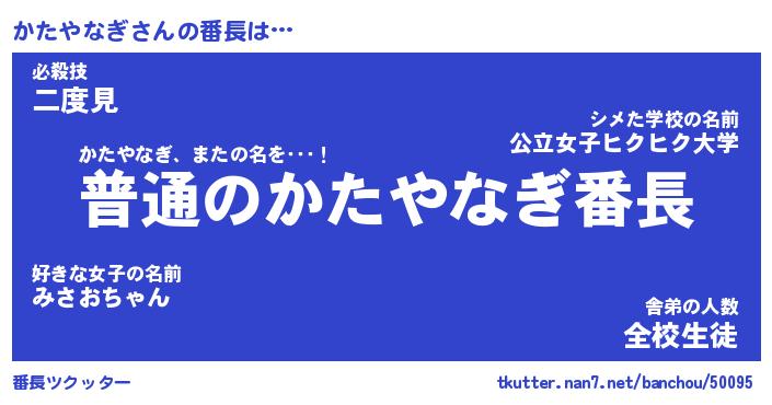 | 肩書あだ名 | 『かたやなぎ店長』『かたやなぎ国家主席』 |