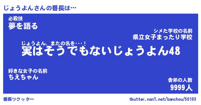 | 肩書あだ名 | 『じょうよんCEO』『じょうよん総理大臣』 |