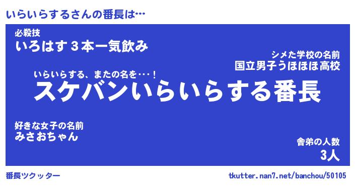 | ピコ太郎風あだ名 | 『イコ次郎』『ピイ二郎』『イラ史郎』 |