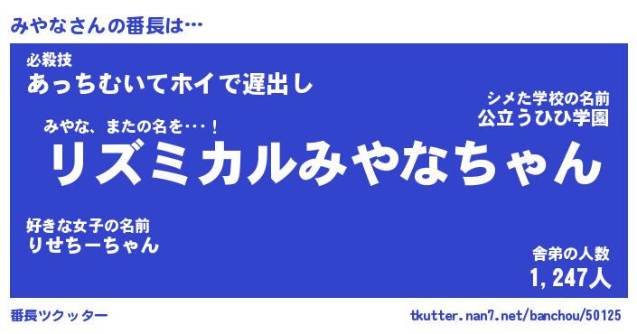 | 意味不明あだ名 | 『ペロリンみやな』『みやなフォーエバー』 |