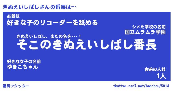 | ヒーロー風カッコイイあだ名 | 『スーパーキヌエイシバシ』 |
