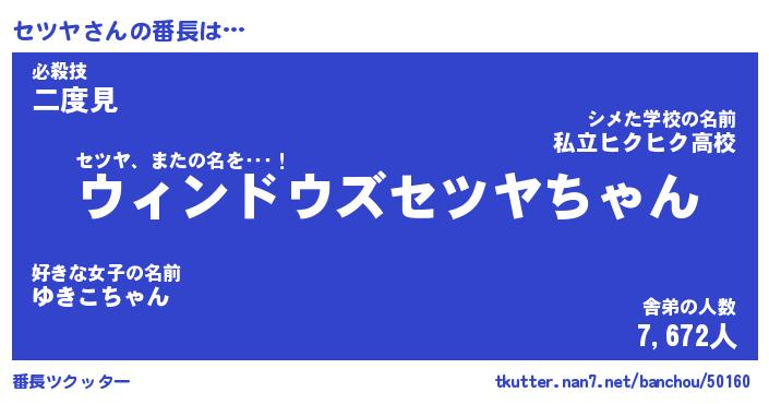| 男性向けラノベタイトル風あだ名 | 『セツヤの憂鬱』 |