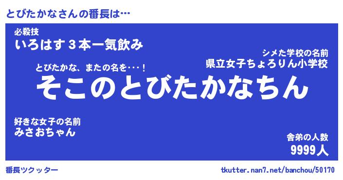 | ポケモン風あだ名 | 『トビチュウ』『トビタダネ』 |