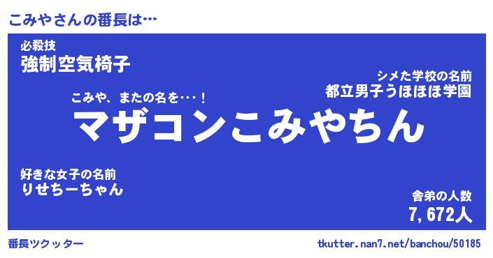 | 意味不明あだ名 | 『ペロリンこみや』『こみやフォーエバー』 |