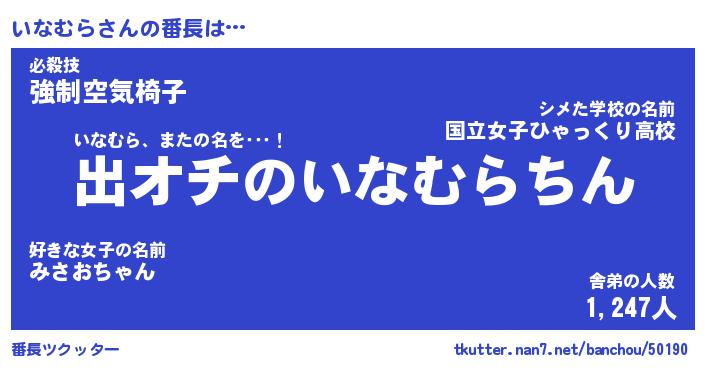 | 伝説のあだ名 | 『伝説の竜騎士いなむら』 |