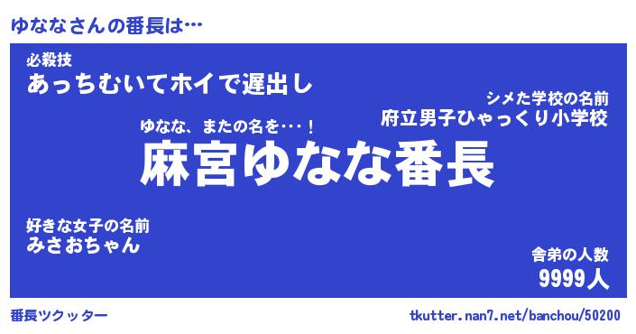 | ヒーロー風カッコイイあだ名 | 『スーパーユナナ』『ウルトラゆななマン』 |
