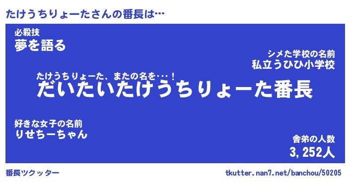 | 肩書あだ名 | 『たけうちりょーた御曹司』 |