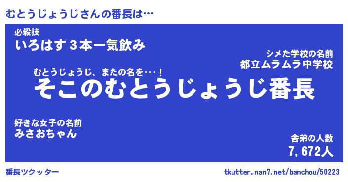 | 伝説のあだ名 | 『不死鳥のスナイパーむとうじょうじ』 |