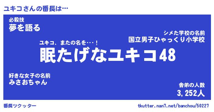 | ピコ太郎風あだ名 | 『ユコ太郎』『ピユ二郎』『ユキ八郎』 |