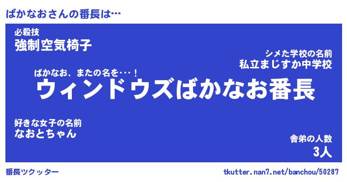 | ヒーロー風カッコイイあだ名 | 『スーパーバカナオ』『魔戒騎士バカ』 |