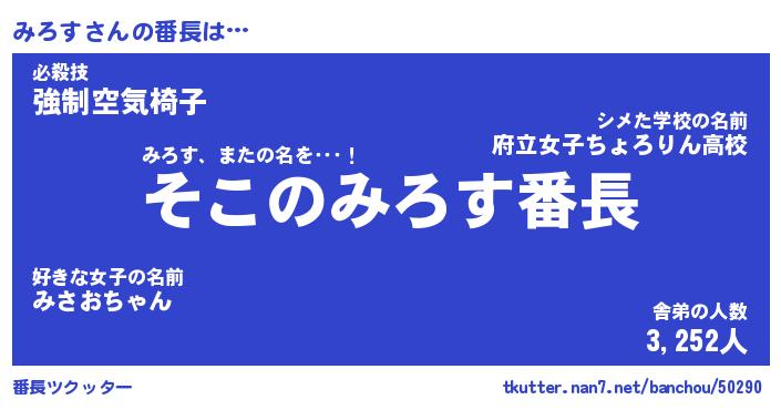 | 意味不明あだ名 | 『ペロリンみろす』『みろすフォーエバー』 |