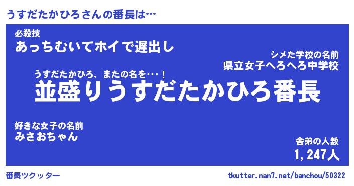 | 意味不明あだ名 | 『ペロリンうすだたかひろ』 |