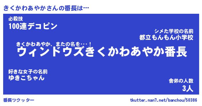 | ヒーロー風カッコイイあだ名 | 『スーパーキクカワアヤカ』 |
