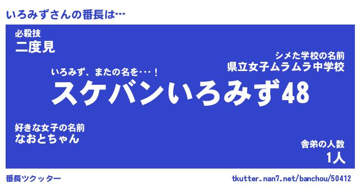 | 意味不明あだ名 | 『ペロリンいろみず』『永久保存いろみず』 |