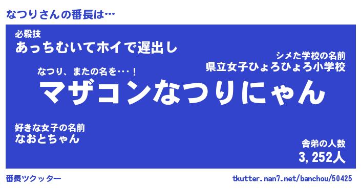 | 意味不明あだ名 | 『ペロリンなつり』『なつりフォーエバー』 |