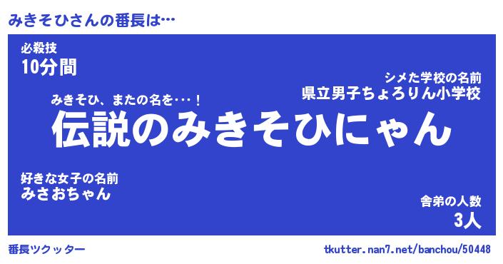 | 伝説のあだ名 | 『伝説のスナイパーみきそひ』 |