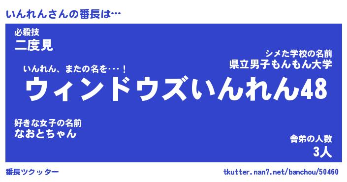 | 男性向けラノベタイトル風あだ名 | 『いんれんの憂鬱』 |