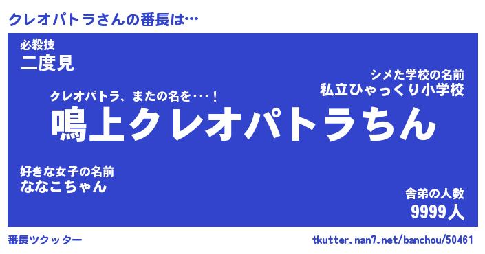 | 2回繰り返すあだ名 | 『クレクレ』『ククレレ』『ぬらぬら』 |