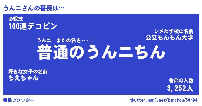 | 肩書あだ名 | 『うんニ御曹司』『うんニ大統領』 |