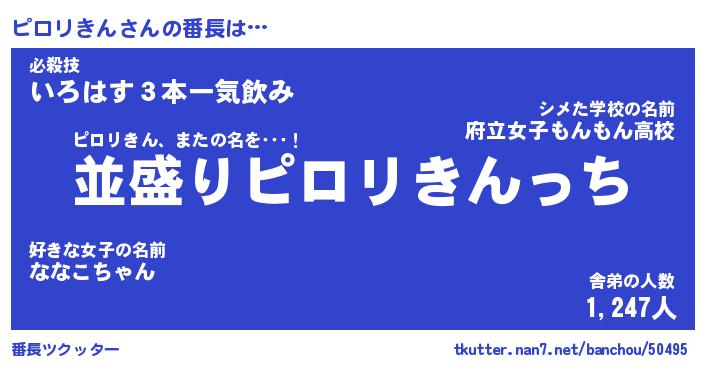 | ヒーロー風カッコイイあだ名 | 『スーパーピロリキン』『銀牙騎士ピロ』 |