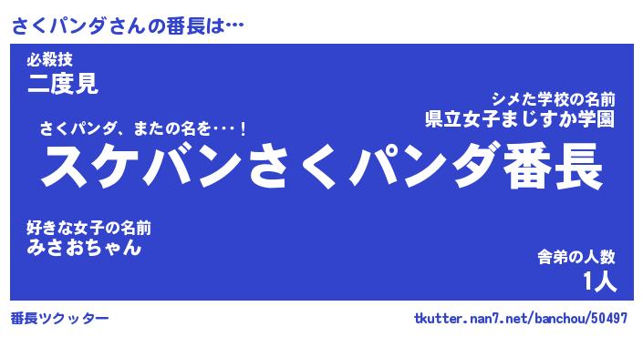 | ヒーロー風カッコイイあだ名 | 『スーパーサクパンダ』『炎刃騎士サク』 |