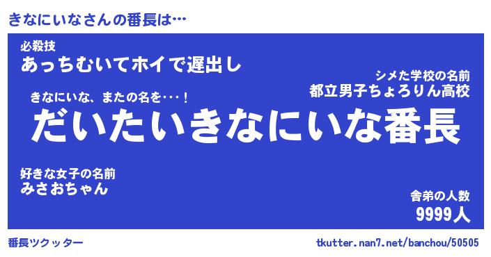 | 伝説のあだ名 | 『不死鳥のスナイパーきなにいな』 |