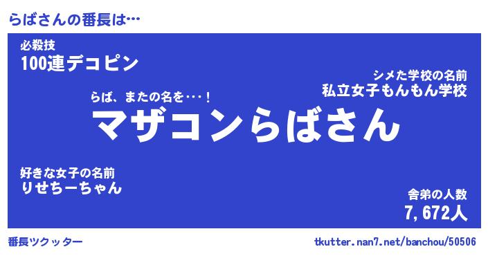| ヘコむあだ名 | 『らばもー』『豆乳』『らば太郎』 |