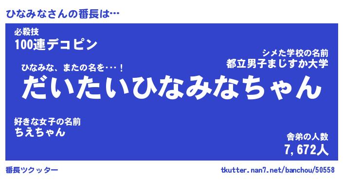 | ポケモン風あだ名 | 『ヒナチュウ』『ヒナミダネ』 |