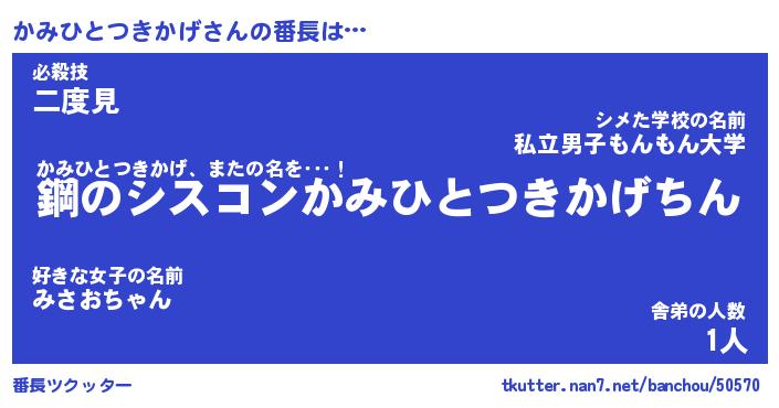 | ヘコむあだ名 | 『かみもー』『酢こんぶ』『かみお』 |