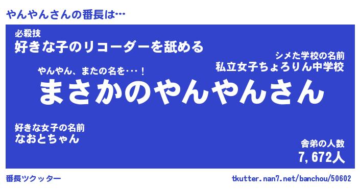 | ポケモン風あだ名 | 『ヤンチュウ』『ヤンヤダネ』 |