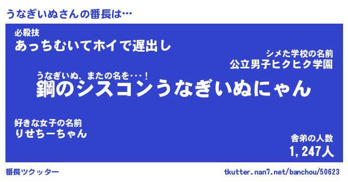| ファンタジー風あだ名 | 『ウナフェル』『エターナルウナギイヌー』 |
