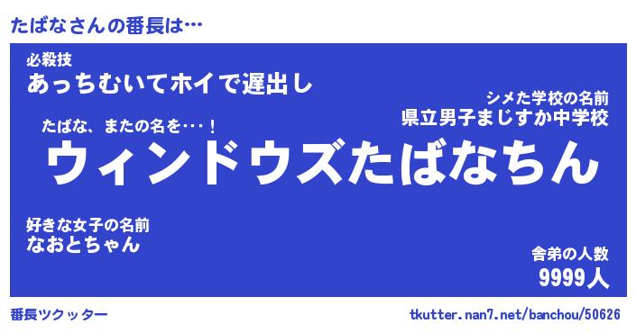 | ヒーロー風カッコイイあだ名 | 『スーパータバナ』『ウルトラたばなマン』 |