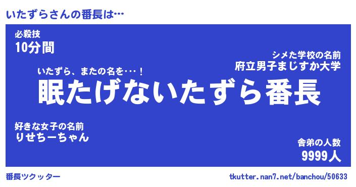 | 意味不明あだ名 | 『ペロリンいたずら』『永久保存いたずら』 |