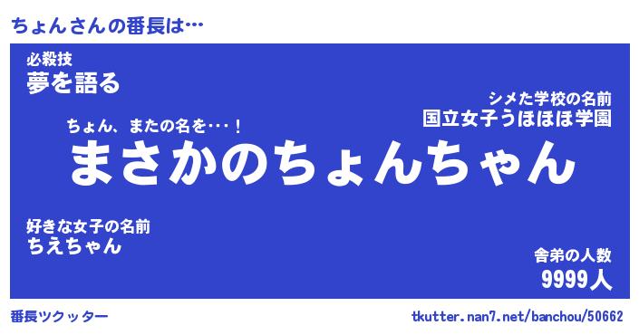 | ヘコむあだ名 | 『ちょもー』『豆乳』『ちょ太郎』 |