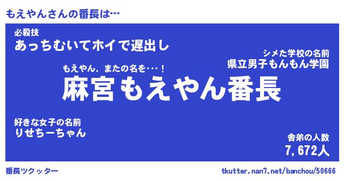 | 肩書あだ名 | 『もえやん御曹司』『もえやん総理大臣』 |