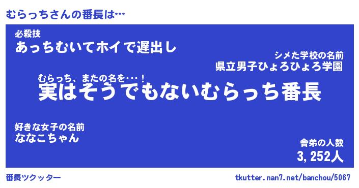 | ヘコむあだ名 | 『むらにゅー』『豆乳』『むら太郎』 |